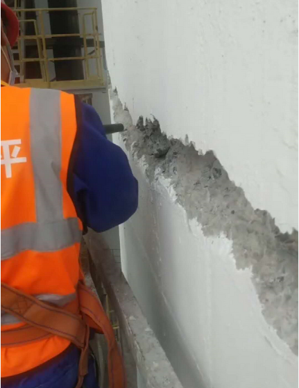 混凝土筒仓裂缝,库存水泥受潮板结,不仅导致下料困难,也增加了清库的难度。